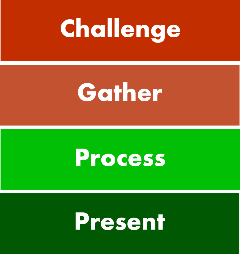 In their simplest form, all projects have four phases. The first phase sets the scenario and poses the challenge. The second phase involves gathering data and information. The third phase involves processing the information and data, and using higher-order thinking skills such as analysis, evaluation, synthesis etc. The final phase involves reporting.